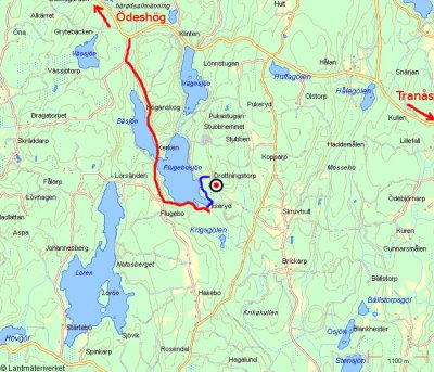 Från Tranås, åk mot Ödeshög. Efter ca 16 km sväng vänster vid skylt Flugebo 3.